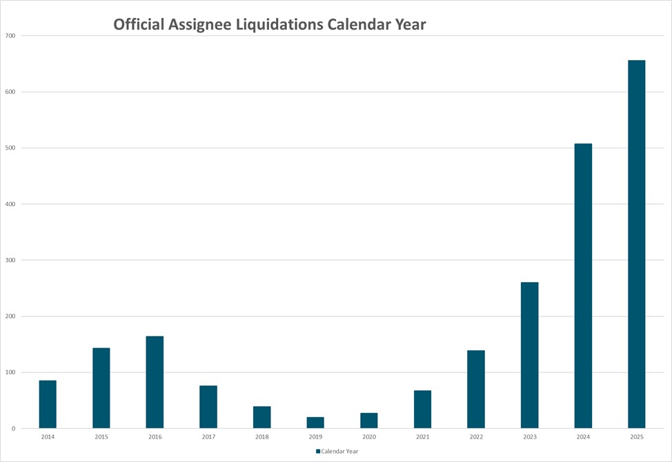 The liquidations taken by the Official Assignee peaked in 2025 off the back of IRD winding up applications. In December 2025 the Official Assignee took 44 of the 76 court appointed liquidations. They continue to be the busiest liquidator in the country.