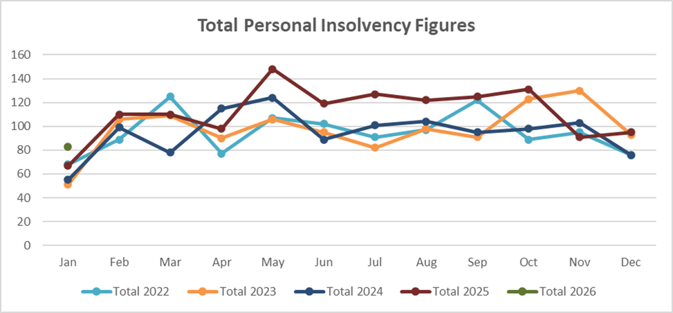 Personal insolvency figures saw a lift in January when compared to the same month in the last few years but it was not a noticeable jump.