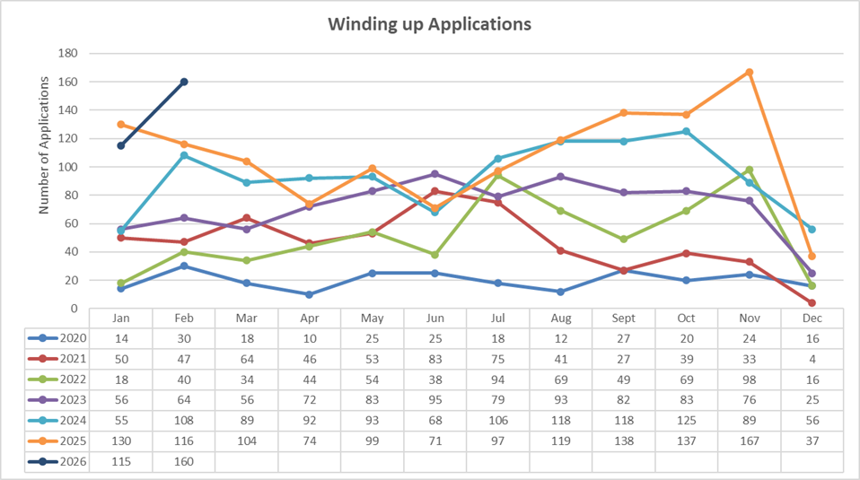 We have started off the year with a bit of pressure seen in the number of winding up applications advertised, it has exceeded what we saw in 2025.