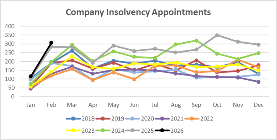 2026 will be an interesting year with an election in the tail end, based on 2024 and 2025 insolvency figures appointments should continue to track up and look to be even higher than what we saw in 2025.