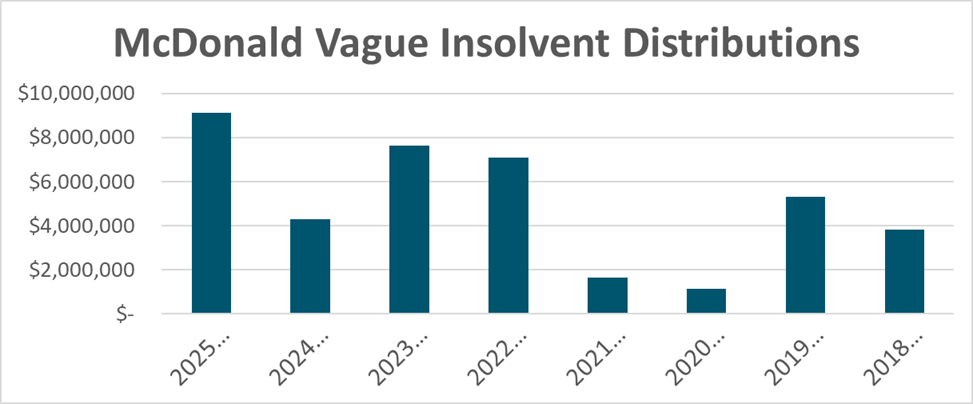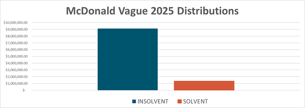 Across all insolvent and solvent appointments concluded within the 2025 calendar year, McDonald Vague paid out a total of: